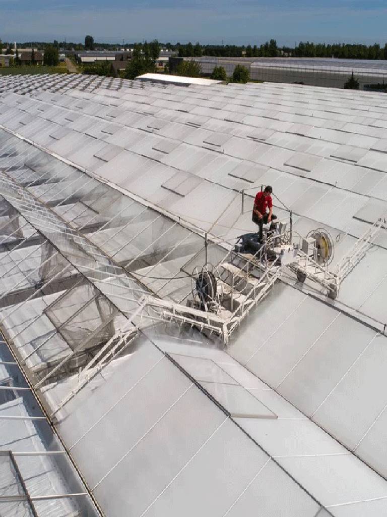 Shading Powder is a cost effective shading product used to create a temporary shade in greenhouses. It can be used in all kinds of greenhouses regardless of glass or plastic and creates an effective white barrier against excessive heat and daylight. This shadow powder layer has a wear resistance of up to 2 months. If necessary, one more layer can be applied.